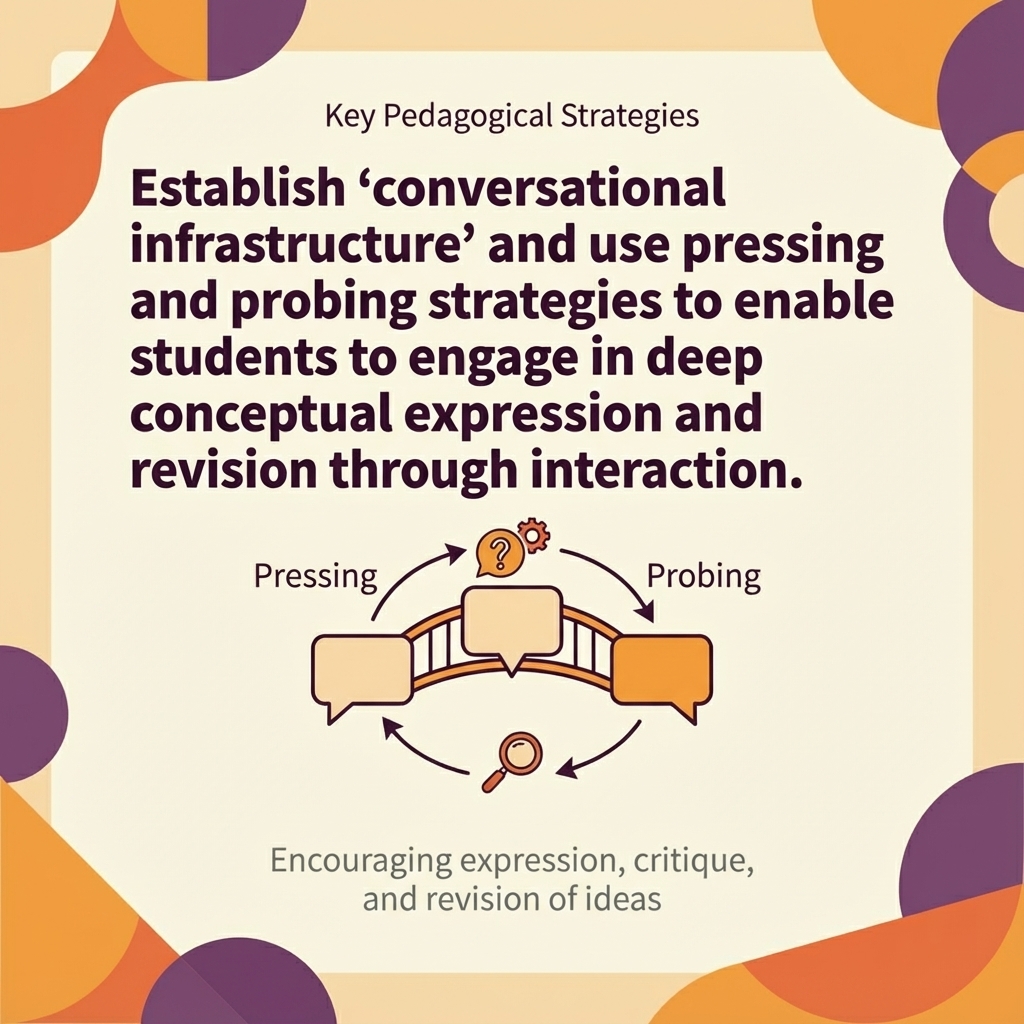 • Managing Novel Interactions: Managing new forms of discourse and collaborative work in the classroom is another challenge. For instance, how to organize group work to ensure students are genuinely discussing ideas, rather than simply using a "divide and conquer" approach.