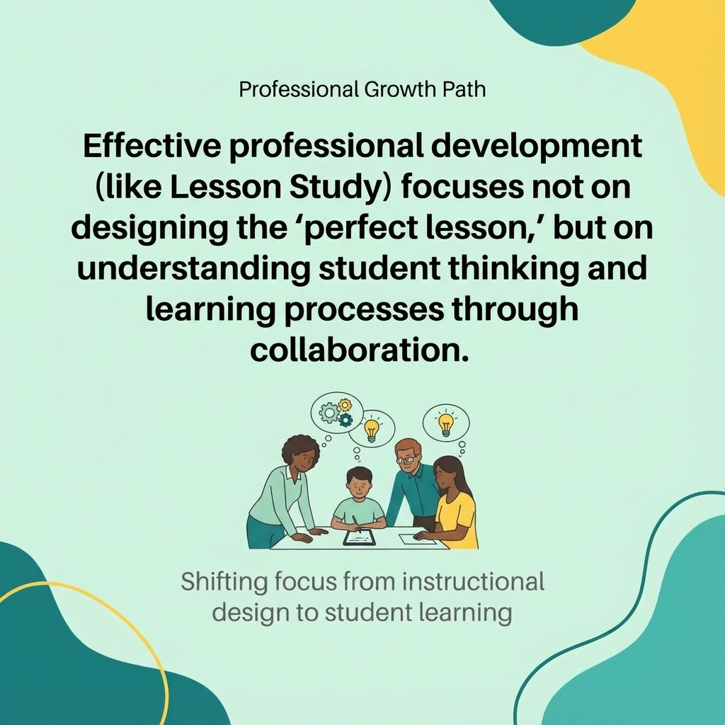 ◦ Core Benefits: The focus of successful Lesson Study is on teacher learning, rather than trying to design a "perfect lesson". The key lies in artful observation, particularly observing specific aspects of student thinking, and subsequent deep discussion. Research indicates that schools implementing Lesson Study show improvements in student test scores.